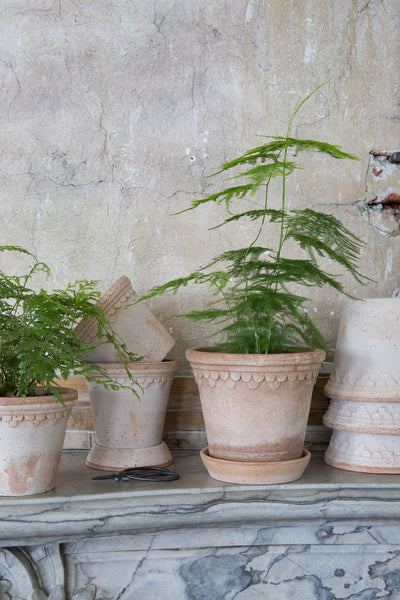 Originally inspired by a pot made in the danish castle of Fredensborg, the Copenhagen ‘Castle Pot’ remains both illustrious and noble in its finish and look. These pots come in rose terracotta and are finished with a decorative, double scalloped design. These are perfect for anyone looking for gorgeous detail without being too ostentatious.
